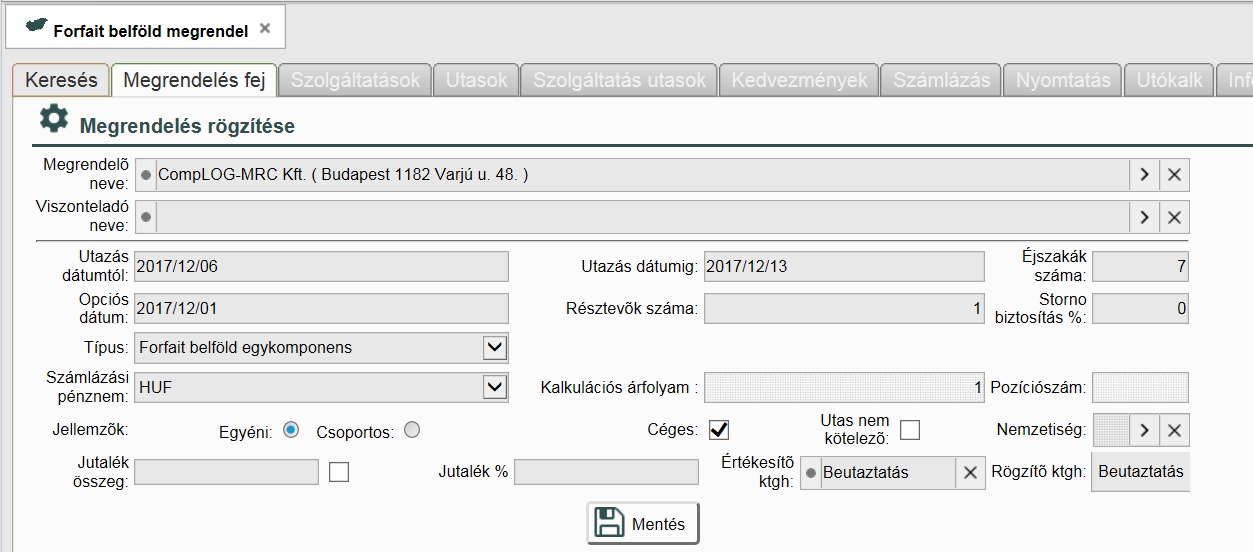 Booking belföld megrendelés(egy komponens)