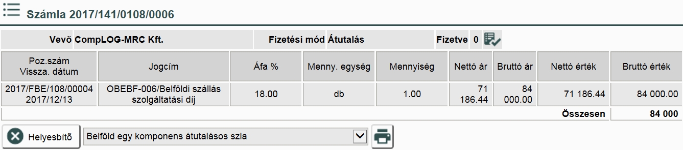 Ha nem helyesbítettük le a számlánkat a nyomtatás lapon, akkor az „Előzetes, Módosítás” gomb hatására a következő eredményt kapjuk: