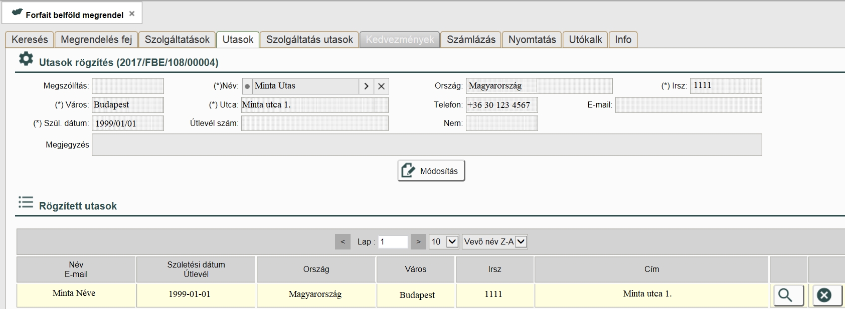 Nyomjuk meg a „Módosítás” gombot. Ismételjük meg ezeket a lépéseket a többi utasra is (ha van).