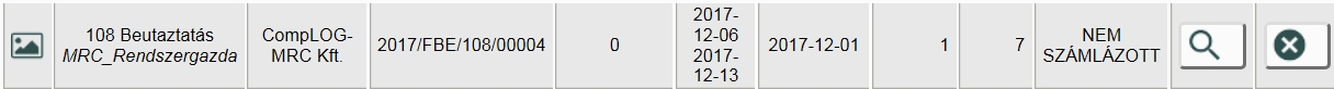 Mentés után a rögzített megrendelések között „NEM SZÁMLÁZOTT” állapottal és a kapott pozíciószámmal megjelenik a megrendelésünk. Az „X” gombbal törölhetjük.