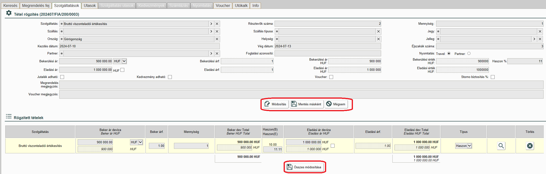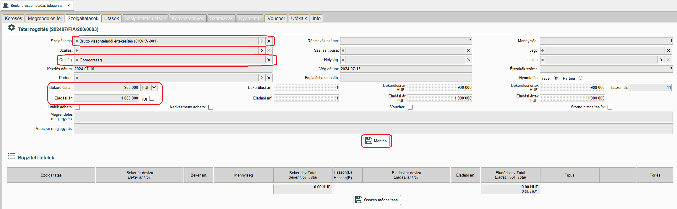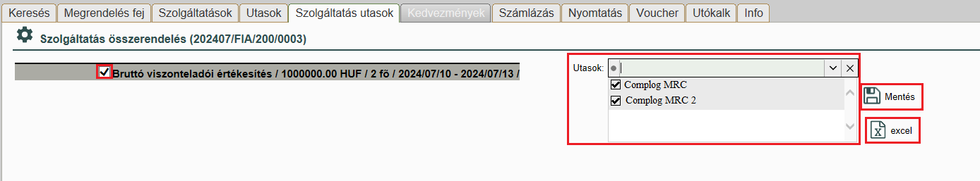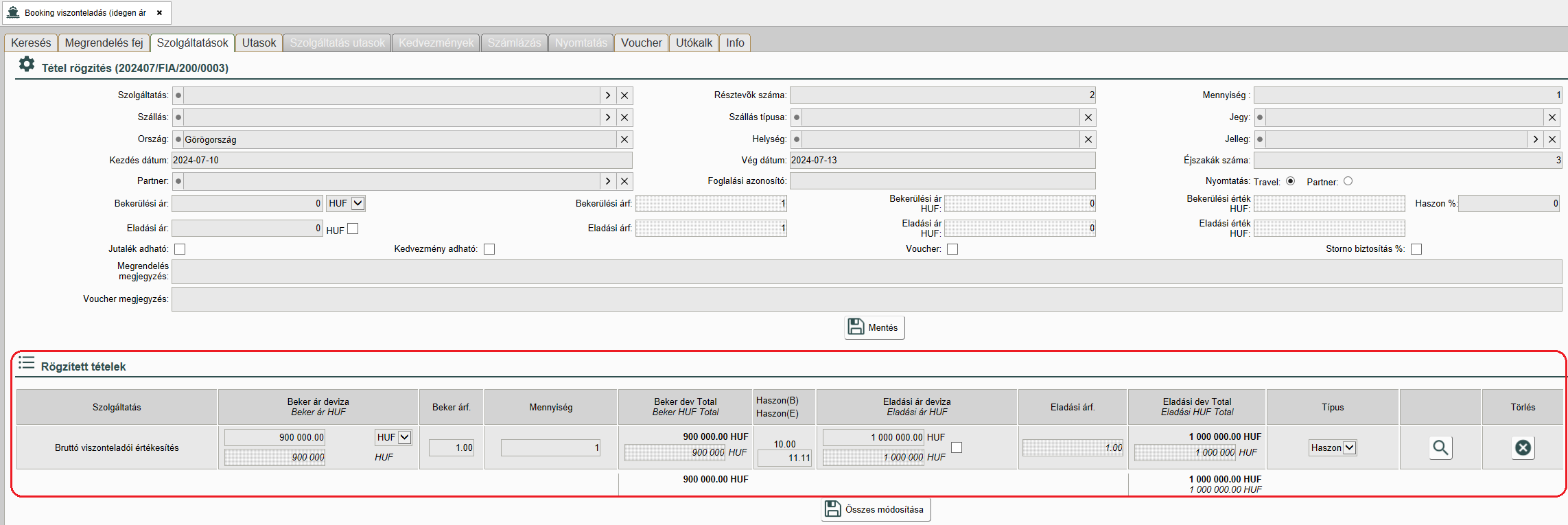 A kiválasztott utasok megjelennek a Bruttó viszonteladói értékesítés szekcióban.