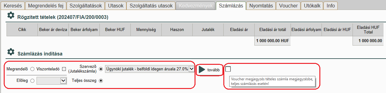 ), akkor teljes számlázás esetén a Voucher megjegyzés a tételes számla megjegyzésbe kerül bele.