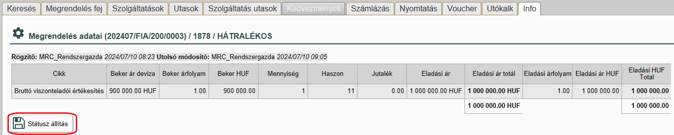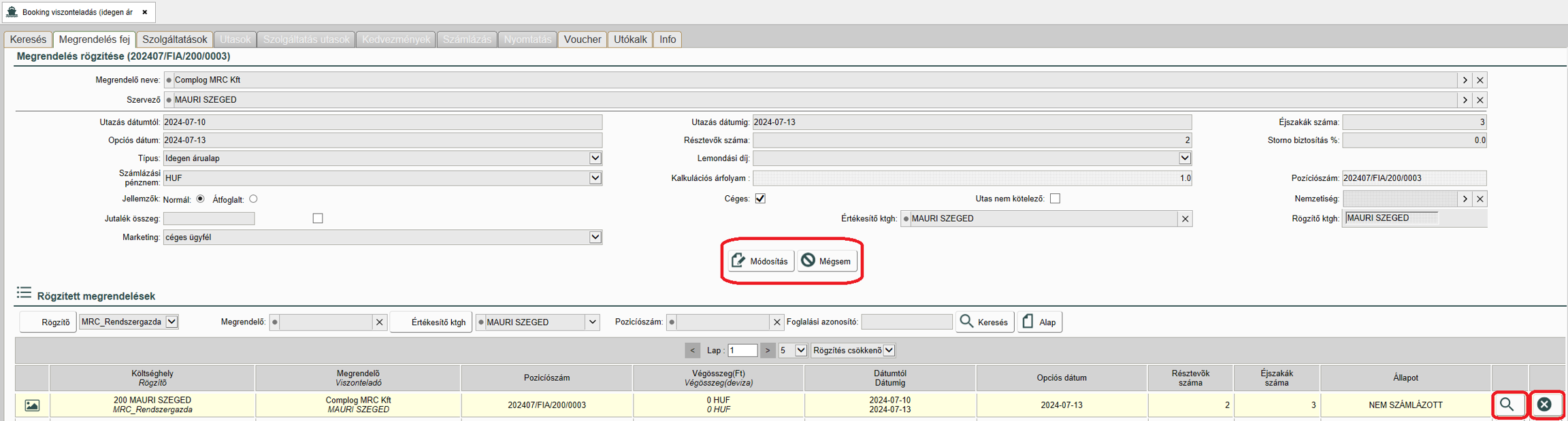 Figyeljünk arra, hogy ne töröljük, hanem mindig módosítással változtassuk meg a rosszul felvitt megrendelőt.