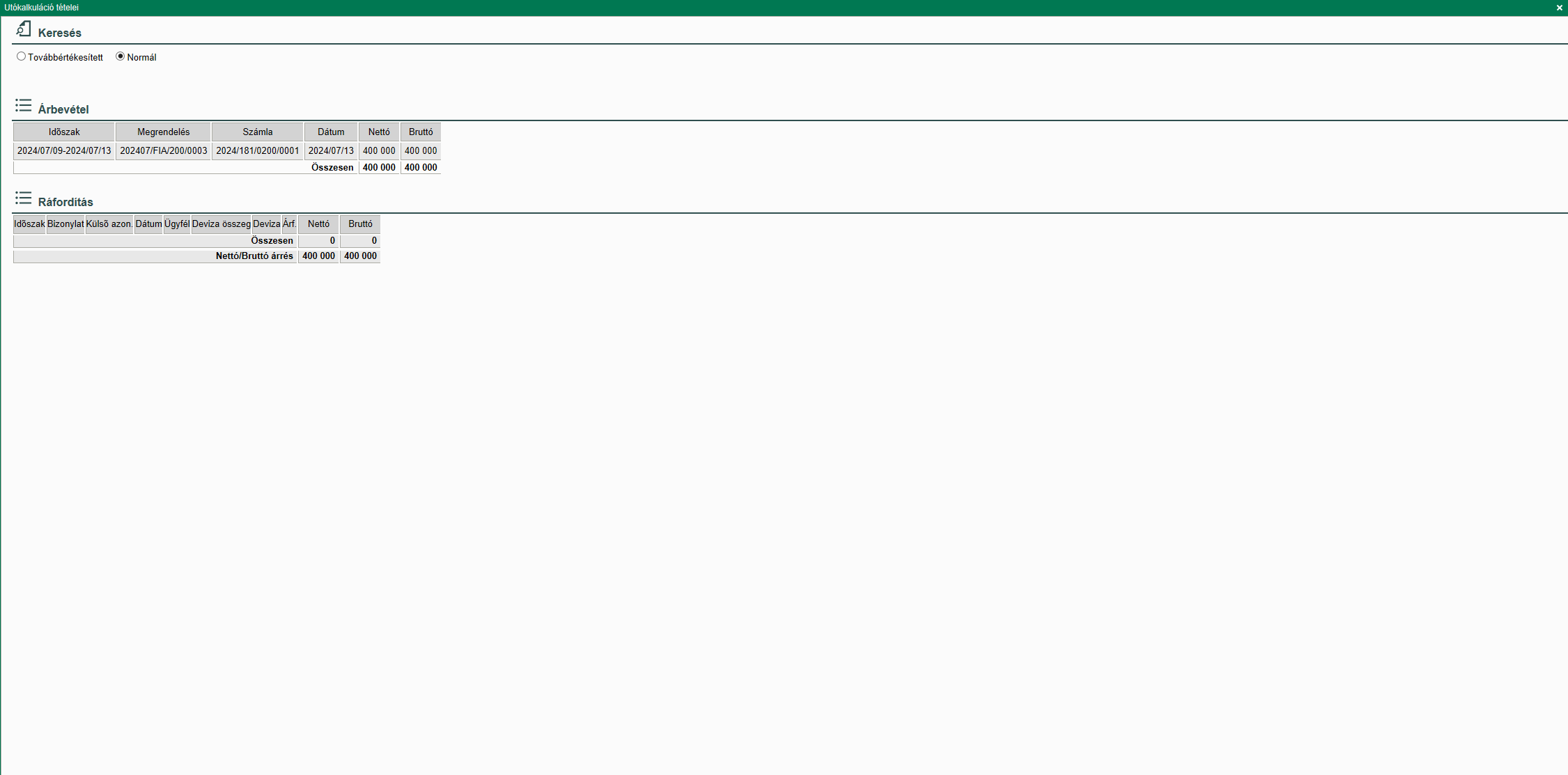 Az Utókalkuláció tételi ablakban az árbevételt és a ráfordítást tudjuk megtekinteni.