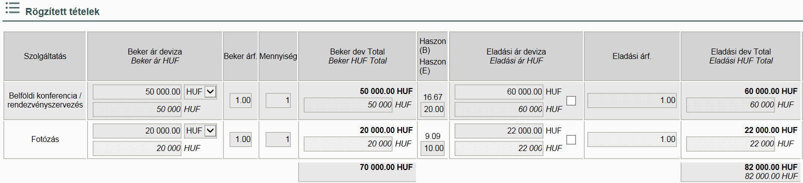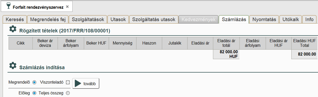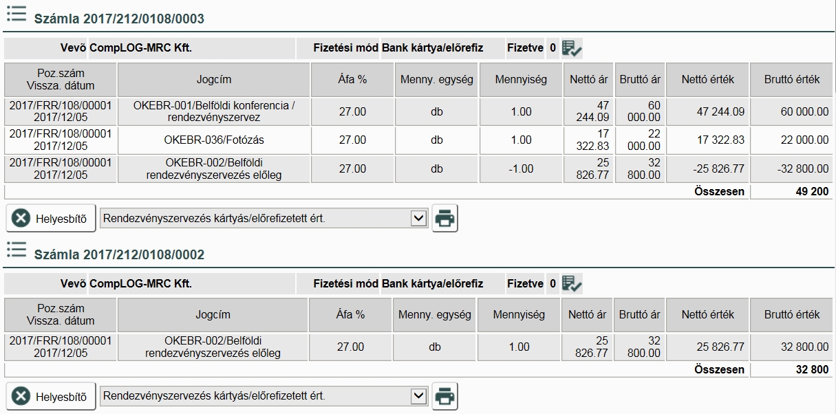 (Az alábbi képen már a fennmaradó összeg is számlázásra került.)