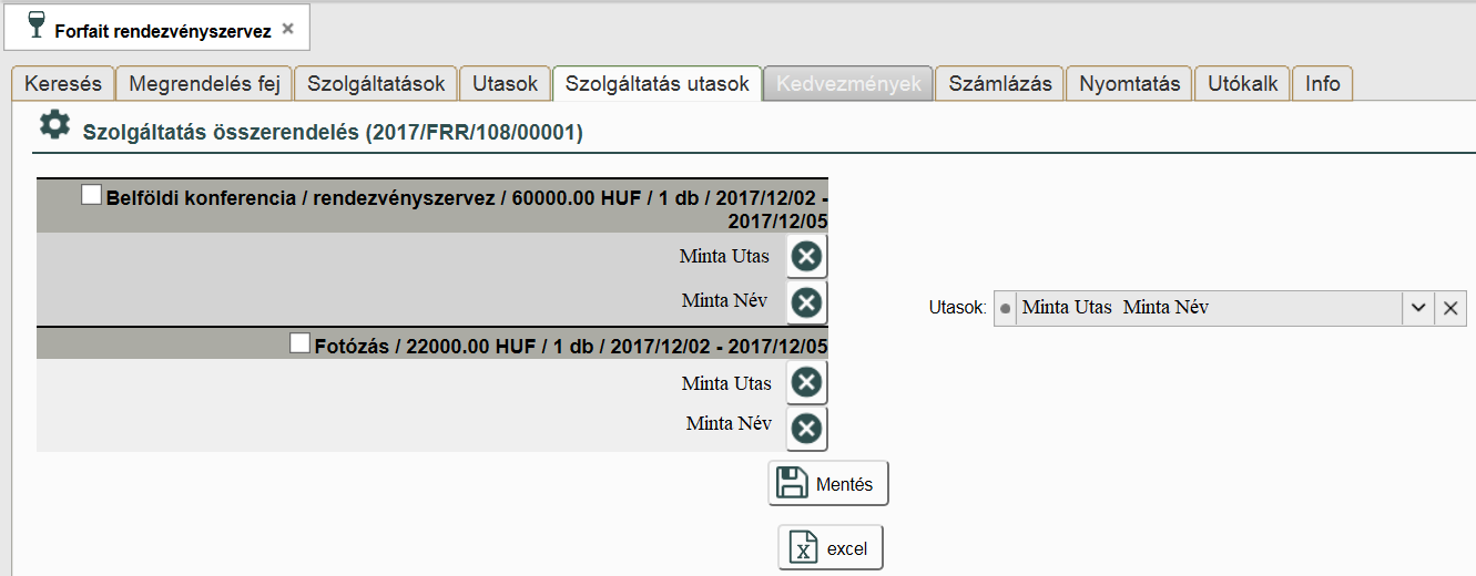 A szolgáltatás utasok lapon tudjuk összerendelni a felvitt szolgáltatásokat az egyes utasokkal.