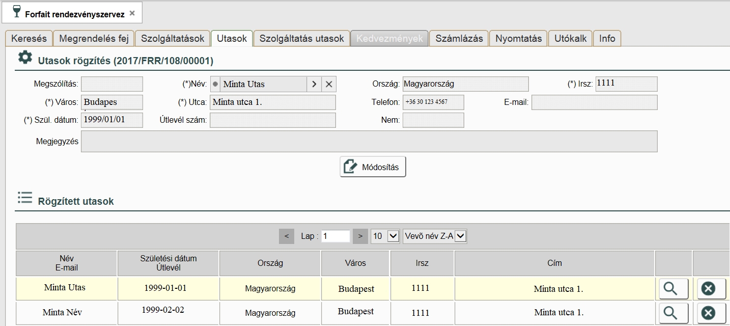 Nyomjuk meg a „Módosítás” gombot. Ismételjük meg ezeket a lépéseket a többi utasra is.
