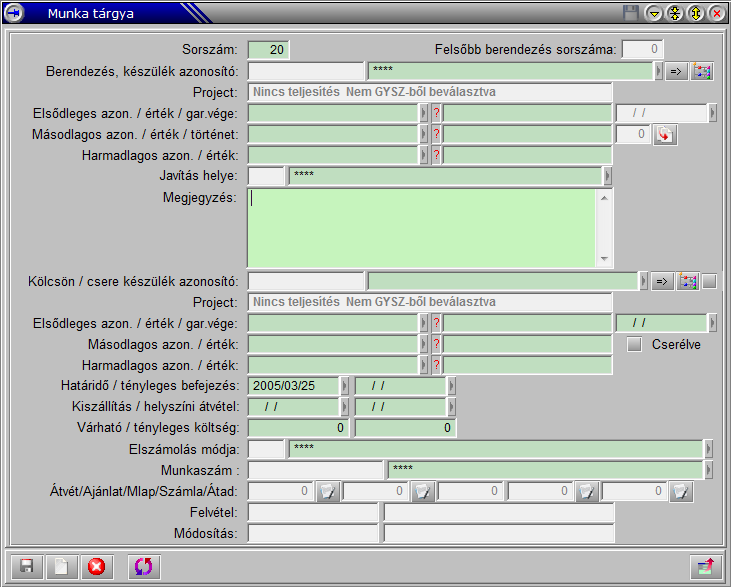Új felvétel esetében csak akkor aktív, ha már el vannak mentve a munkatárgy adatok.