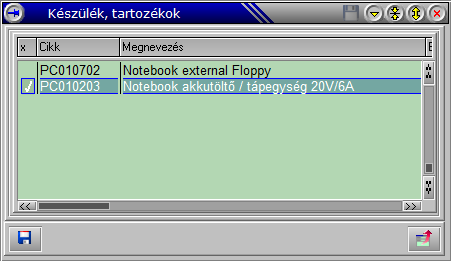 A szükségeseket a szóköz billentyű megnyomásával kijelölhetjük. A rendszer maximum 10 tartozékot tud kezelni.