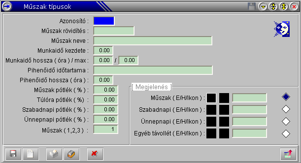 | -      M.kezdés            |   | Műszak kezdés                    |